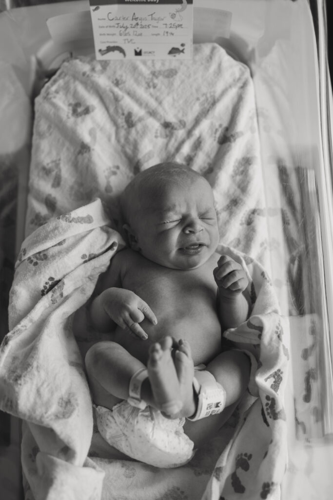 Some things I love specifically about fresh 48s: tiny details in a little time capsule– Peeling skin, wrinkly feet, hospital bracelets + fresh newborn features that disappear quickly, Low pressure: No need to clean your house, dress up, or worry about baby doing ‘good’. Some things families may not like about a fresh 48 are Hospital environment: Medical equipment and hospital lighting are part of the story, parents are recovering: You may feel tired, sore, or emotional (which is sooo completely normal), limited styling: I usually do hospital swaddle, bare baby (well, plus a diaper) + them in their going home outfit.