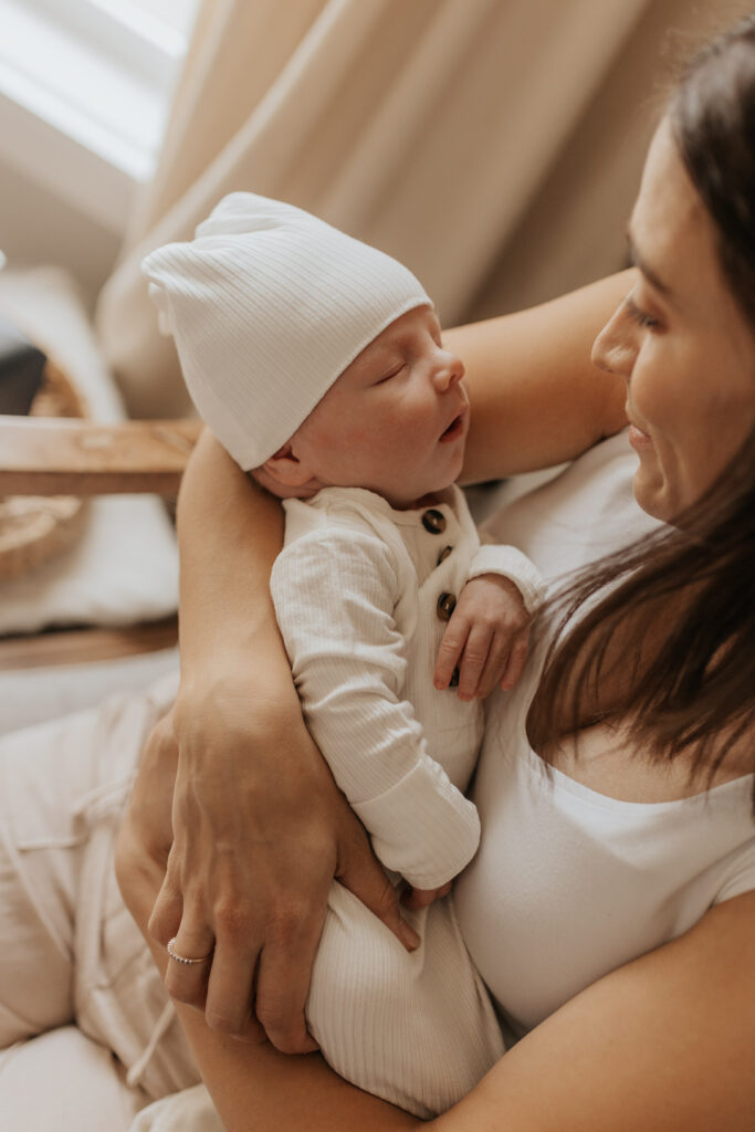 A lifestyle newborn session typically happens within the first 14 days after birth, either in your home or a studio (I usually work out of Elizabeth Marie Collective). These sessions are gently guided and focus on connection, comfort, and your baby settling into life with the people who love them most.